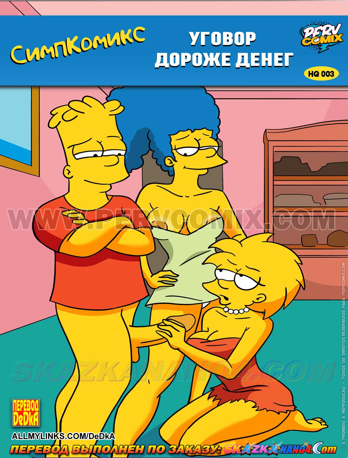 Порно комикс «Симпсоны. Часть 62. Мама моей девушки.» Барт нашел себе новую подружку, но она оказалась не из простых! Дженнифер разрешила ему только совместную мастурбацию, но, кончив, уснула, оставив своего парня без внимания. Разозлившись, Барт ушел со стояком и по дороге столкнулся с мамой Дженнифер…